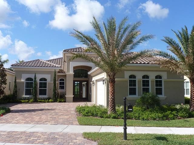 ''Augusta'' Model by Emerald Homes is complete and ready for immediate move-in! This well appointed 2 bed/2 full bath, 1 half bath, plus den model features impact glass, 2-car garage plus golf cart entrance. Situated on water,golf course lot. Call agent for complete list of specifications.