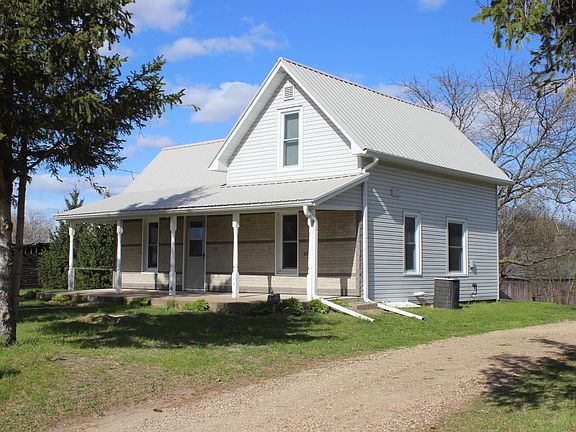 Hard to find a setting like this one with a pond, pasture, small stream and hardwood trees close to town on a paved dead-end road. Many updates to this farmhouse make it 'move-in' ready. Newer siding, windows, metal roof, interior flooring, paint, heating and electrical updates. Functional kitchen, large dining & living rooms, and spacious bathroom with laundry all on the main level. Upper level includes a bedroom, and the hallway that could be utilized as a non-conforming bedroom. There a is small shed for storage and a large barn that could be used for hay or livestock. The spring fed pond is stocked with fish. If you are looking for something in the country check this one out.