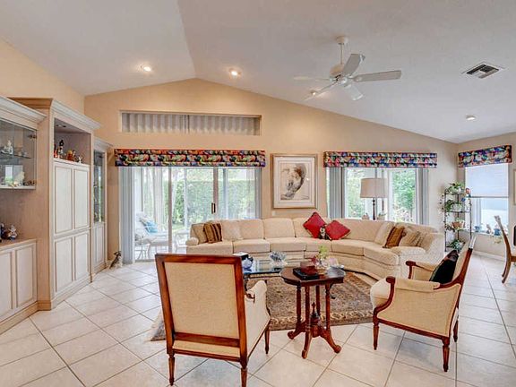 The pride of ownership shines in this lovely home! **These original owners have made many improvements - updated kitchen (wood cabinets and granite), updated baths, enclosed and air conditioned Florida room to expand the living space, new A/C 7/18, accordion shutters, custom window treatments, upgraded light fixtures, screened front entrance **The spacious master suite offers his/hers walk-in closets, added seat in master shower, Roman tub, plus unique additional storage closet in master bath **Many quality features and upgrades when home was built - 3' deeper lot, inside laundry (full size washer/dryer) w/added cabinets, wash basin in garage, tile on diagonal **Amazing natural light from a whole wall of sliding glass doors and clerestory windows **Beautiful updated clubhouse and amenities