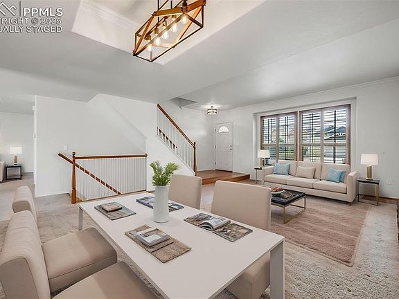 Incredible Opportunity! Welcome home to this beautifully maintained 5-bedroom, 4-bathroom walkout home in the highly desirable Meridian Ranch neighborhood! Step inside to discover a spacious and functional floor plan filled with natural light, plantation shutters, and a modern kitchen featuring granite countertops and an island perfect for entertaining. The main level also includes a cozy living room with a gas fireplace and thermostat-controlled blower, plus a dedicated dining area. Upstairs, the generous primary suite features a luxurious 5-piece bath and walk-in closet, accompanied by three additional bedrooms and a full bathroom. The finished walkout basement expands your living space with a large rec room, an additional bedroom, and another full bath. Enjoy the Colorado lifestyle on the expansive deck overlooking the backyard. Meridian Ranch offers top-tier amenities like indoor and outdoor pools, a sauna, steam room, indoor basketball court, fitness center, community rec center, parks, trails, and Antler Creek Golf Course. Seize this rare opportunity to own a beautifully updated home with exceptional financing in one of Peyton’s premier communities!