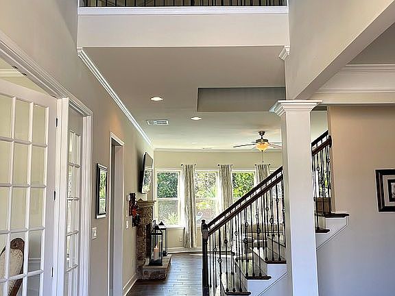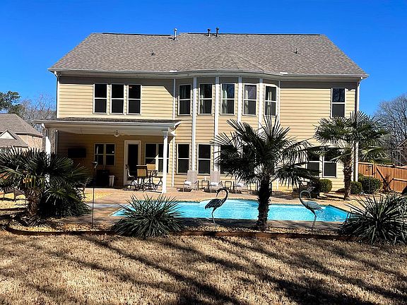 An elegant decorated home with a pool will take your breath away the moment you enter. The floor plan offers an open-concept home that flows seamlessly, emphasizing the amazing outdoor living space with the desirable southern exposure. These 4 bedrooms, 3 and 1/2-bathrooms with 2 large home offices and 2 car garage is equipped with an upgraded chef’s kitchen, huge island, marble countertops, dining area, pantry, and new porcelain tile throughout the first floor. The spacious master suite with tray ceilings offers dual vanities, roman tub with columns and glass shower stall. A huge bonus room is located on the second level. Walk out to a covered eating area and a resort Dejoyaux roman style sparkling pool with LED lights!! A fenced backyard with plenty of space for entertaining, family fun, and outdoor relaxation plus a large garden for those with a green thumb.