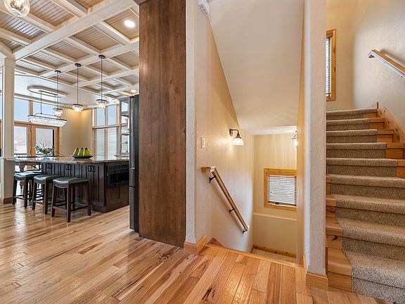 This stunning, remodeled home overlooks the 17th green & is being sold turn-key. Inside, views pull you forward, wowed by hardwood flooring & renovated kitchen w/coffered ceiling & massive granite island. The kitchen features to-the-ceiling, rich brown cabinetry w/specialty lighting. Cook w/high-end appliances, copper farmhouse sink, pot filler, & walk-in pantry. French Country inspired backsplash & crystal/metal lighting fixtures make an Architectural Digest worthy presentation. The bright & comfy living room w/ 22’ ceiling has a built-in bookcase/ladder, wall of windows, a modern rustic fireplace w/live mantel, shiplap, & stone. The main level powder room has a copper sink, lighted crown molding, & copper ceramic tile designer touches. An expansive main level deck overlooks the golf course & pond. Lots of entertaining opportunities from relaxing to soothing sounds of fountains, outdoor dining, fireside wine w/the stars, to viewing of golfers. The main floor en-suite bedroom offers heated floors, large walk-in closet & access to the deck. The upper-level w/new carpet, storage & a view offers TWO LOFT AREAS allowing for additional sleeping/guest space. The lower-level features wet bar, pool table, fireplace, & new LVT. Lower patio offers hot tub & large golf cart garage.