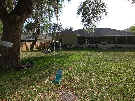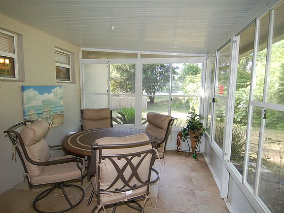 Wait till you see this backyard! Half acre lot on cul de sac, views of wooded trees. Ahhh you feel like your living in the country. Firepit and even a tree swing. You can still view the outdoors on a rainy day from inside the glass enclosed patio along the back of this home. Not only do you have a formal living/dining combo in the entry way but in the back of the home you have a very open kitchen/family combo. Plenty of room for family and friends, breakfast bar, breakfast room, kitchen island. TWO pantry closets. Super large owner suite, currently with a king size bed and still plenty of room left over. Owners bathroom includes garden tub, separate shower and water closet.Concrete block construction! It's sturdy, storm resistant and the energy savings goes on for years.