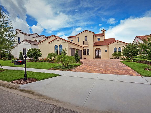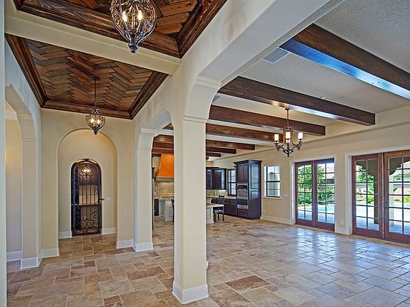 This just completed Spanish Revival inspired home is located in gated Casa del Lago where residents enjoy access to all of amenities at neighboring Keene's Pointe Country Club. Just off the entry the library/office, features wood flooring, custom moldings and trim work, offering an intimate space for conversation. The generous dining room is perfect for entertaining family. An open arrangement of the great room and kitchen takes in natural light through a wall of French doors enhanced with volume ceilings and custom wood beams. The generous kitchen is well equipped with top of the line Viking appliances, imported stone flooring, exotic granite, custom cabinetry and a walk in wine room and pantry. The large island and open seating at the bar combine to form a built in casual dining area. With a focus outdoors the pool with heated spa, gas fire pits and fountain is finished with travertine decking. Dual outdoor living areas create excellent outdoor entertaining space. The outdoor covered living area features cypress ceilings and includes a wrap around summer kitchen with bar, grill and fridge along with pool storage and a pool bath. The detached cabana boasts a fireplace with TV niche, custom stone wall and cypress ceilings. The spacious master suite is tucked away for privacy. Adorned with paneled cabinetry, exotic granite, a rain shower, and soaking tub the master bath is elegant yet functional. A loft/flex room upstairs and three additional en-suite bedrooms complete this exceptionally finished home.