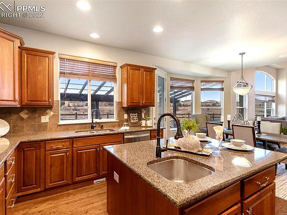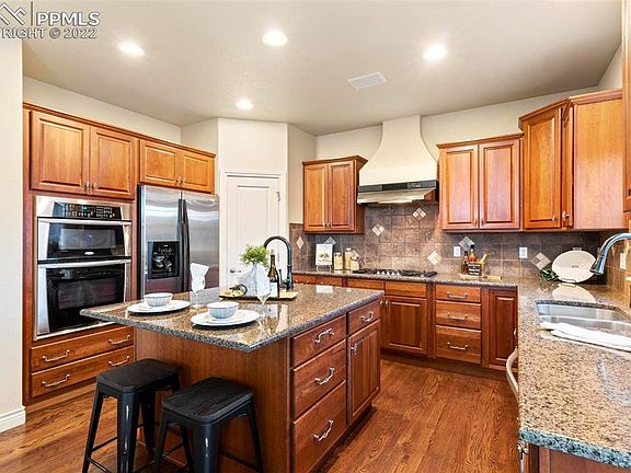 Welcome home to 4,700 sq ft of beautifully designed space located in the heart of the desirable Meridian Ranch neighborhood. A grand vaulted ceiling entry gives way to hardwood floors, glass french doors, large family room and a gourmet kitchen. A five burner gas range, walk in pantry and prep sink make entertaining easy in this amazing kitchen. The home features five bedrooms, five bathrooms, and a three car garage allowing for plenty of space to stretch out. Hot tub, exterior concrete patio, theater room, built in speakers on exterior and interior, and an additional junior suite with attached bathroom and walk-in closet add to the luxury of this home. The half acre lot is nestled in a cul de sac just off the golf course. Meridian Ranch offers convenience and fun with a community center featuring pools, a gym, a fitness room and many events including youth sports, parents night out, dances, festivals and workout classes, Antler Creek Golf Course, and hiking trails.