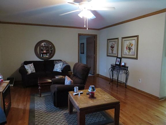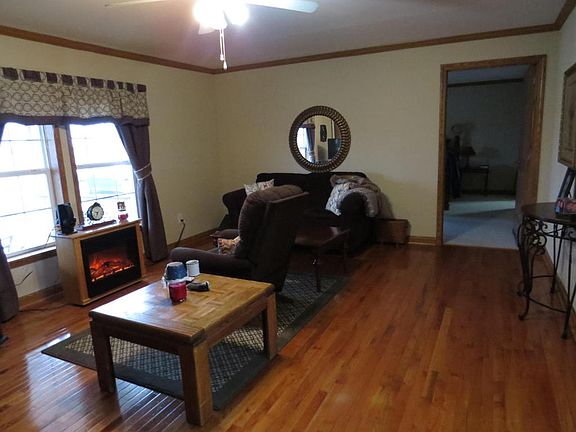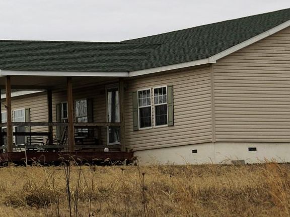 Country home with hardwood flooring in the large living room, open floor plan, eat in kitchen, lots of cabinets, huge master suite with jetted garden tub and walk in shower. Home offers all walk in closets in bedrooms, covered porch, covered deck and storm shelter area, and a crawl space access. Home is on 4.53 acres M/L with long private drive way.
