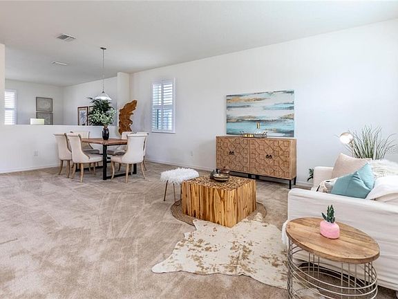 No expense spared in this untouched beauty! Meticulous original owners built with luxury in mind & sadly their plans changed shortly after moving in. This is truly a NEW home hardly lived in! Enormous gourmet kitchen boasts custom cabinetry w/designer crown molding, stainless steel appliances, under cabinet lighting, wine rack, cooktop, true double ovens, French door fridge, pantry & microwave! Entertainers island enhances the breakfast nook complete with sliding glass door leading to the extended covered lanai & open floor plan/great room. Formal dining/living room combo allow plenty of elbow room & versatility. 1st floor is completed with powder bath & room for a drop zone. Garage is stunning with a newly finished diamond grind epoxy finish appealing to an elite auto enthusiast. Upstairs greets you with a magnificent open loft area that could easily be made into a 5th bedroom or used as a media room. Luxury master suite is completed with a sitting room, two of the largest master closets you've ever seen, & ensuite to drool over with his & hers sinks, Jacuzzi tub, water closet, & frameless glass shower. To the other side of the loft is a very large bedroom suitable for a home office. Opposite of the stairway is the secondary bath complete with double sinks, & tub/shower. Front load washer dryer await in the dedicated laundry room. Two more identical bedrooms are ready for the taking! This spacious home won't last long! Hurry to see it! NO CDD Fees!