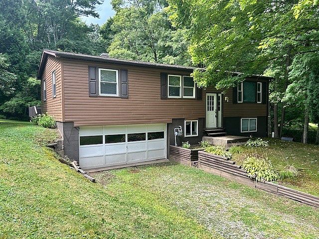 Split Foyer Design offering open concept layout with kitchen overlooking the large Living Room/Dining area with vaulted ceilings and sliders to rear yard; recently remodeled main bath, freshly painted bedrooms, some newer windows, lower level offers 22x12 area to be finished with a walk out; plumbed for lower level bathroom; lower level laundry, large 2 car garage with storage, small deck overlooking large yard.