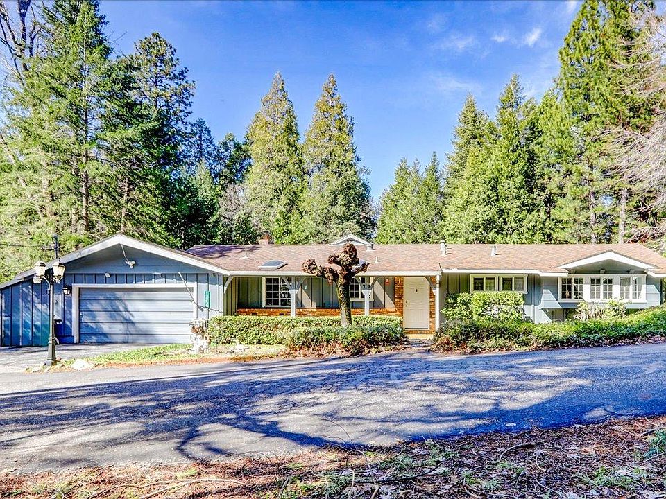 Nestled on just over an acre with lots of mature trees, this 2,458 square foot home offers the ultimate blend of space, comfort & tranquility. Step inside & discover a spacious haven boasting 3 bedrooms & 2 bathrooms, two inviting living areas provide ample space for relaxation & entertainment, two gas fireplaces, while a designated office area offers the ideal environment for productivity & focus. The heart of the home has a well-appointed kitchen, featuring modern appliances, ample counter & cabinet space, & a convenient breakfast table to be a perfect spot for morning gatherings. Outside, the possibilities are endless. Enjoy peaceful evenings under the canopy of mature trees, host lively BBQs on the expansive deck, or indulge your green thumb in the spacious yard. The property also boasts a convenient 2-car garage, workshop area, and storage building, providing plenty of space for all your hobbies and storage needs. Located on a paved road only minutes to shopping & restaurants with a coveted Nevada City address with a perfect blend of privacy & location.