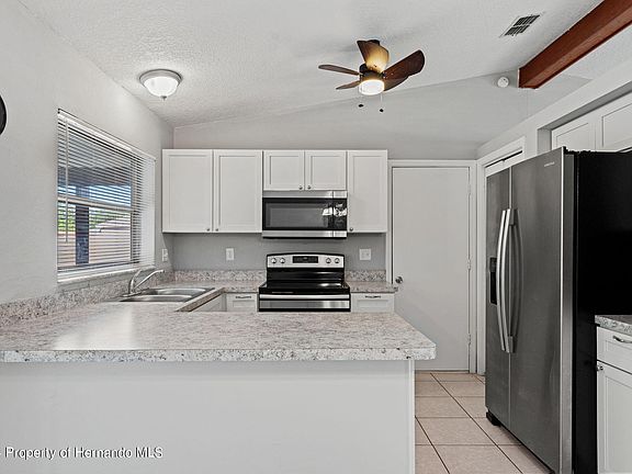ACTIVE UNDER CONTRACT - ACCEPTING BACK UP OFFERS Don't Miss Out! Fantastic Opportunity: Renovated 2-Bedrooms Home with Expansive Lanai in Prime Spring Hill Location! Get ready to fall head over heels for the layout of this home—it's designed to steal your heart! Picture this: wide-open spaces, high ceilings that make everything feel bigger, and not a single popcorn ceiling in sight—talk about a breath of fresh air! This home was recently given a fresh coat of paint, inside and out, and the tile flooring is easy to maintain, making cleaning a breeze. With a handy one-car garage and a partially fenced yard, this place has all the practical perks you need. But here's the real kicker: the fantastic 12'x18' covered patio, all screened in and perfect for outdoor living. Imagine lounging on this spacious patio, adding a ton of extra living space to your home. And let's talk about the kitchen—it's been completely redone with trendy white cabinets, brand-new appliances, and a cozy breakfast bar that's perfect for quick weekday meals or casual gatherings with friends and family. One of the best features of this home? It's nestled in the 34609 area of Spring Hill. And if that wasn't enough, this home is conveniently located near the expressway, putting you in Tampa in under 45 minutes. With its desirable location, fantastic features, and unbeatable value, this Spring Hill gem won't last long!