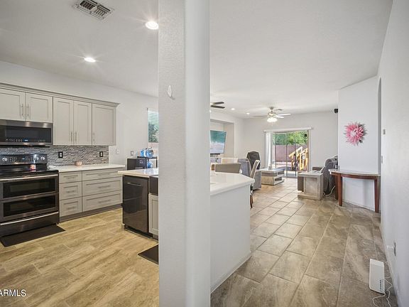 Welcme to your new UPDATED home with an OPEN floor plan and extensive upgrades! The kitchen features new cabinets, counters, backsplash, a smart refrigerator, self-cleaning double door oven, microwave, quiet dishwasher, and Farmer's sink. Bathrooms are fully remodeled with new cabinets, counters, sinks, and tiled bathtubs. Enjoy new tile flooring throughout and new carpet in three bedrooms. Master suite is elegantly tiled. Living area boasts wooden blinds. On the outside, find an above-ground pool with solar panel and vacuum. Too many upgrades to list - a must-see!