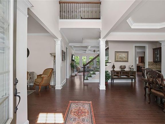 BEST lot in the neighborhood, private on 3 sides, lush, beautifully landscaped level lot ready for a pool. This gorgeous home is completely move-in ready. Open floor plan living in a light-filled, very well maintained home. This home features many of the builder's upgrades with coffered ceiling in family room, hardwood flooring, custom cabinetry, stainless steel appliances and more. Ideal floor plan w/bedroom and ensuite bathroom on main floor and 4 bedrooms all ensuite on top floor plus additional large bonus room w/ full window bay that could be used as a bedroom. The Master Suite is very spacious with a large upgraded bathroom and big walk-in closet. On the main floor, you will want to spend time in the family room relaxing and gazing out the windows to the private oasis of a backyard. Front porch, rear screened porch, deck and lower patio offer additional options for the best of outdoor living. As newer construction, this home offers many coveted features like mudroom area off garage with built in hooks and cubbies for storage, wide garage with additional storage space, butler's pantry off dining room, oversized kitchen island, offset stairwell with hardwood stairs and open upstairs hallway. With top-rated schools, close proximity to downtown Alpharetta, Crabapple, Milton and Roswell amenities you won't want to let this one get away.