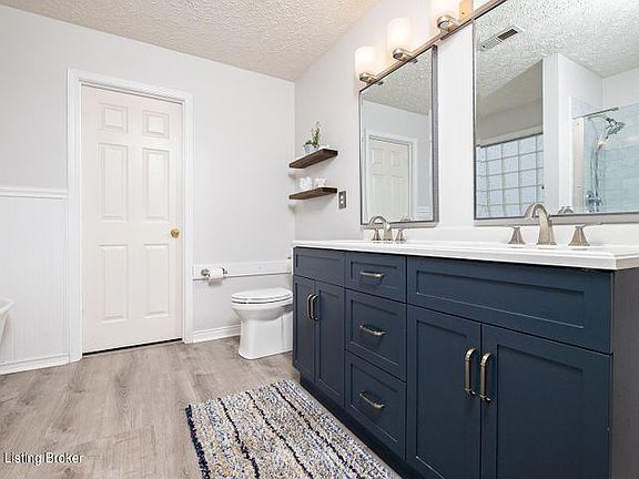 Wonderful Beckley Hills area 4 bedroom 3 baht home, living space is up to 2300 square footage. Many great updates from newer heating and cooling system, a beautifully remodeled primary bedroom and bathroom. A recent deck addition adds great outdoor space. Located just a short distance from all that the Parklands at Floyds Fork has to offer. Lots of natural light enters the home and located at the end of a cul-de-sac street. Schedule your showing for this lovely home. Tenant pays all utilities including electricity, gas, water, cable et al. Tenant also responsible for drain clog, bulb replacement and yard maintenance. Tenant agrees background/ credit/income check.