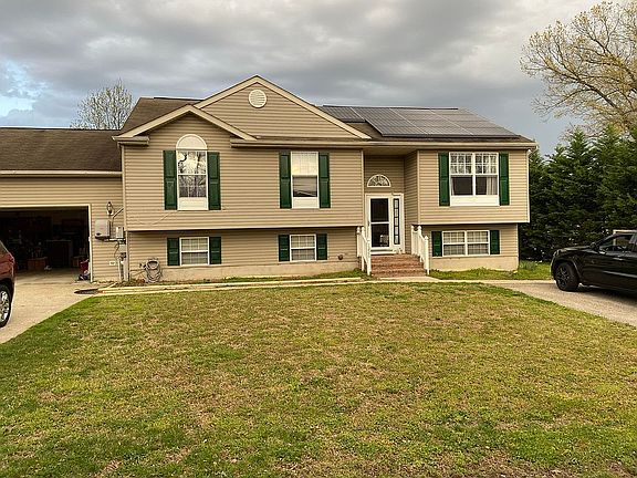 Huge split foyer w/cathedral ceilings & 2-car garage. Private lot w/2 drives for parking. Open floorplan w/gleaming wood flooring & sunfilled rms. Island in kit, sliders to deck for outdoor dining. Lg bdrs w/wood flooring. Private mst bath. LL w/wood stove, den or 4th bdr, & powder rm. Sliders to hot tub area. Home being sold "AS IS" but should pass all financing. Must take over Solar City lease.*