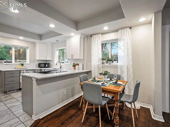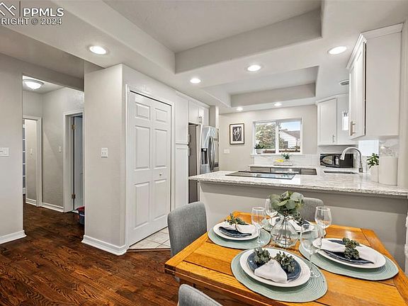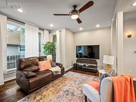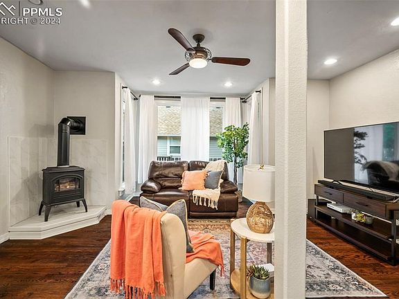 This charming home is nestled in the heart of one of the best tree lined neighborhoods of Colorado Springs and boasts a range of modern features and conveniences to elevate your living experience! Step into the updated kitchen, complete with granite countertops and soft close cabinets. Discover the stainless-steel Samsung smart fridge taking all of your kitchen activities to the next level. The main level impresses with beautiful hardwood floors that flow gracefully throughout, leading you to the cozy living room featuring a gas fireplace adorned with beautiful heat-resistant tiles. Unwind in the incredibly spacious primary bedroom, accompanied by an en-suite bath which is very rare to see in this neighborhood! The primary bathroom is a luxurious oasis, featuring an oversized custom shower with soothing jetted sprayers. Enhancing your experience, a Wi-Fi enabled Bluetooth speaker system fills the room with your favorite tunes. A double vanity with granite countertops and a heated tile floor adds to the sense of opulence. On the main level you will find two additional bedrooms and a full bathroom in the hallway. Heading downstairs, you'll find a family room already wired with built in speakers, ready for countless hours of entertainment! The practicality of this home continues with a large laundry room offering ample shelving and counter space as well as a utility sink. An extra storage/utility area ensures you have space for all your belongings. Step outside to enjoy multiple concrete patio areas! You will also find the oversized two car garage, equipped with additional electrical outlets and a storage area/workshop in the back. On the north side of the garage, you will find an outdoor area with low maintenance, artificial turf offering endless possibilities! The yard is fully fenced, ensuring privacy and security! Enjoy central AC on the hot days! Situated on a triple lot and is the epitome of comfort and convenience!