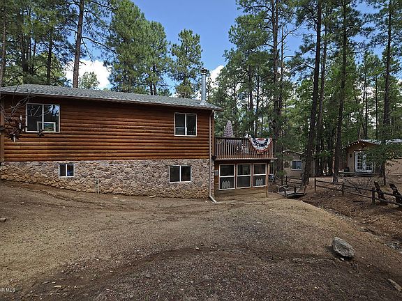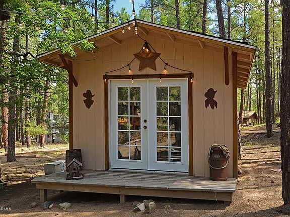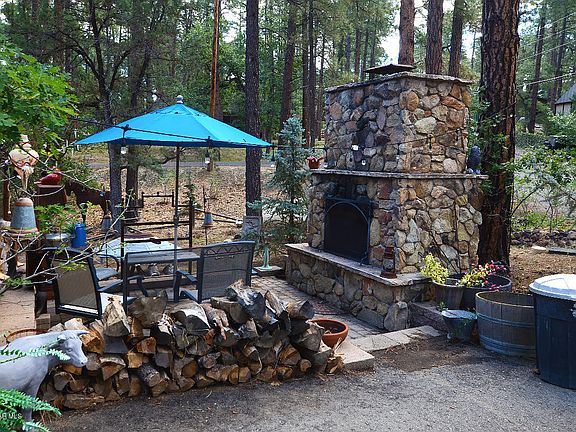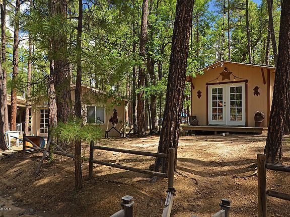 Charming year round home located on a spacious, treed, corner lot. Features lower level walkout Arizona Room, a seasonal creek, outdoor fireplace and patio, apple trees, 400 square foot detached two car garage/workshop, which currently has french doors, instead of a garage door. There is a shed, paved, flat parking area in front of home, a front trex porch and elevated rear deck. Central heat in home, plus a wood burning stove and two propane heaters. The garage has air conditioning and propane heat. Groom Creek Fire Station is around the corner and Groom Creek Park is close by. It is only 6.5 miles and a fifteen minute drive to the Courthouse Square. All roads to the property are paved. This property was purchased new in 2001 by the current owner.
