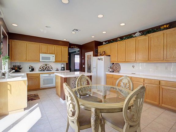 This home is the whole package! Immaculately clean, big enough, but not too big, pristine pool and 3 car garage! Good luck finding a cleaner home, this one really shines! Very flexible floor plan with 3 true bedrooms, a den/office downstairs plus a master retreat upstairs. Earth-tone tile floors in high traffic areas. Rich decorator two-tone paint colors in select rooms. Kitchen cabinets and counter were extended through the builder. Luxurious master with crown moulding and see-through fireplace to master retreat. Shade structure in rear yard and BBQ island to stay. Sink in garage for your convenience. Cement side yards. TV's in bedrooms 2 and 3 can stay.