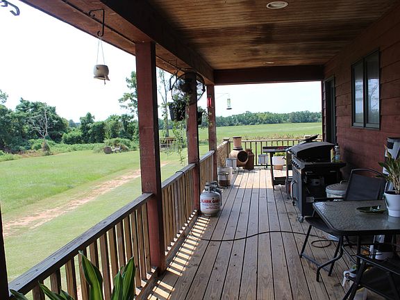 This is a beautiful country home sits back off of the main highway with a long driveway. With 3 Bedroom and 2 baths upstairs and 1 Bedroom and 1 bath downstairs you would have plenty of space for guest. All appliances stay with the large open kitchen. All the bedrooms and baths are nice size, High ceiling with wood beams with ceiling fans in the den and kitchen. Off of the kitchen is a nice size laundry room. In the den are built in bookcases and large windows for all the natural light and hard tile flooring. This house has a wraparound deck with part of it being covered.A There are 4 garages doors downstairs and a one-bedroom apartment with a full bath downstairs. Plenty of room for storage and your cars and trucks. With 6.28 (+-) Acres you could have a small farm or a nice place for horses or cows. To the left of the property there is electricity (hook up) for a camper. And behind the home is a small pen for a pet.