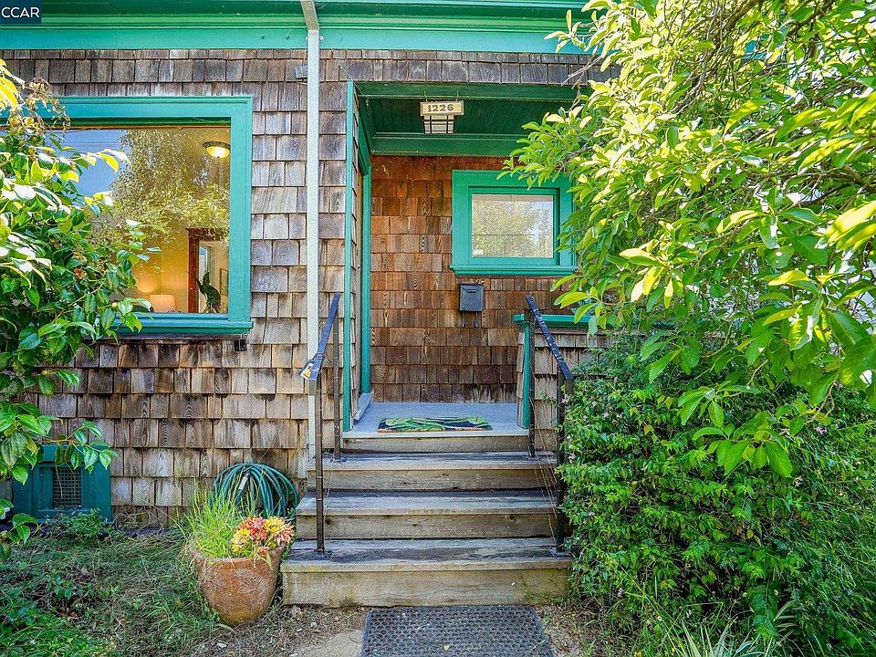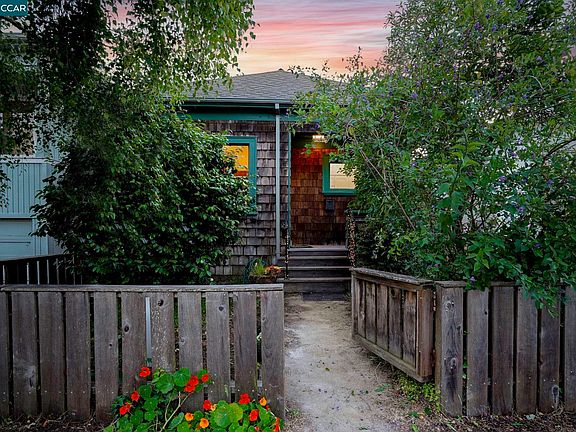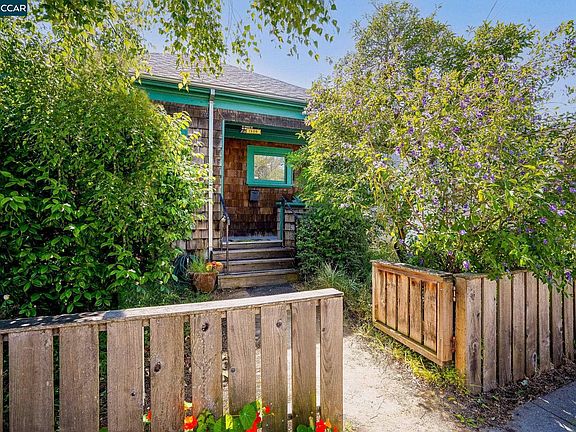 Welcome home to this charming Craftsman cottage at the border of Berkeley and Albany. Come on in through the front gate to a garden bursting with blooms, songbirds, and the occasional butterfly. Step up the stairs to the private front porch perfect for whiling away an afternoon watching the world go by. Inside this 1912 home, you'll find vintage charm balanced with modern conveniences. Hardwood and cork flooring along with tall ceilings and period architectural accents, large windows welcoming natural light, and a beautiful 1930s Wedgewood stove add to the home's charm. New quartz countertops, breakfast bar, and backsplash, ample cabinet space, updated lighting and a newer furnace and water heater, combine to make it easy to come home. This home has two bedrooms with ample closet space, a full bath, and a small home office ideal for remote work or crafts. In the secluded park-like backyard, the fruit trees, planter boxes, and a large open area offer plenty of places to relax and play. The basement houses the convenient washer and dryer, along with extra storage. All this close to Whole Foods, REI, North Berkeley BART, the thriving restaurant scene of Gilman Avenue, commute corridors, and more. Come on by, and come home to Berkeley!