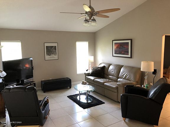 Pride of ownership shows in this well maintained home/property. This move-in ready home is located in the quiet subdivision of Sleepy Hollow and is close to shopping, restaurants, schools, I-95, walking distance to L3Harris (Palm Bay Campus) and less than 15 minutes to Brevard’s beautiful beaches. This 3/2 home has a family room, living room, formal dining room, kitchen (with vaulted/tray ceilings), and split bedroom plan. The large master bedroom has a walk-in closet and the master bathroom has double sinks, jetted tub and a separate shower. The second and third bedrooms are on the opposite side of the house along with the second bathroom with shower/tub. Home also has inside laundry room. **PRIVATE BACK YARD**The back of the house has an extra-large tiled trussed screened patio that is great for relaxing or entertaining, along with a very spacious brick paver patio that surrounds the entire outside of the screened patio. A fence on each side of the property provides extra back yard privacy. Other features: Alarm system, tile flooring (18”) in all rooms except for carpet in bedrooms, deep well for irrigation, hurricane shutters, maintenance free shed, brick paver patio in front of the house. Recent upgrades include new A/C (Jun 2019), exterior paint (Dec 2019), shingled (30 Year) roof (Jan 2020).
