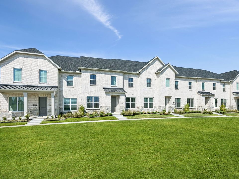 CB JENI Homes Henry floorplan. This 2,350 sq. ft. town home has a downstairs owner's suite featuring a large bedroom, walk in closet and luxurious bathroom with an oversized shower and two sinks. This home is ideal for entertaining family and friends, boasting a chef's kitchen, which is open to the dining and family room, kitchen island, large pantry, quartz countertops, stainless appliances, pot and pan drawers, 5 burner gas cook top and more. Upstairs features two large secondary bedrooms, a huge game room and media room. Twin Creeks Watters is situated near the best schools, dining, and shopping all with expansive lakes, parks, and acclaimed golf courses nearby. East-facing home with large open space outside front door.