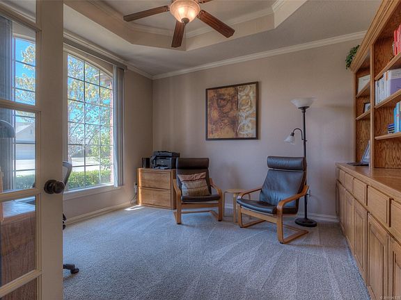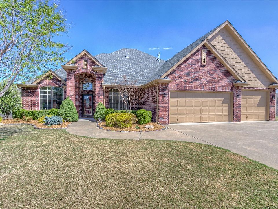 This fantastic single-story floor plan is like new and loaded with upgrades! Gourmet kitchen with stainless appliances (new professional vent hood) and granite. Spacious great room with gas fireplace. Office with built-in bookshelves. Formal dining or living with French doors. Luxurious master suite. Storm shelter. Incredible outdoor living with extensive custom landscaping including multiple patios, extended flower beds and pergola. Must see to appreciate.