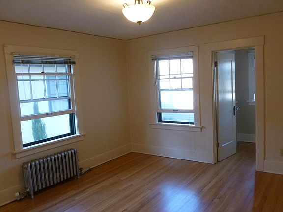 Fuller Apartments is located in the desirable neighborhood of Northwest Portland, otherwise known as the Alphabet District, one block from the trolley line that serves the Pearl and Downtown and is in walking distance to grocery stores, numerous restaurants and coffee shops, and NW 23rd Avenue. Easy access to I-405, I-5, and 26. The apartments were built in 1925 in a popular style of the time, Spanish Revival, and many such buildings can be found in the Portland area. These apartments are ideally suited to those who love historic architecture. This spacious upstairs unit boasts lots of natural light and features hardwood floors, a decorator fireplace, and other period architectural details. The kitchen features period cabinetry, new counters, eat-in area, and large window for natural light. New granite countertops are being added to this spacious kitchen. The bedroom, also spacious, features hardwood floors, large closet, and adjacent sunroom or computer room or additional separate closet, depending on your needs and wishes. Bathroom includes deep period tub, shower and pedestal sink. There is a shared balcony for residents and there will soon be a communal patio for tenants' use in the backyard. Steam radiator heat. Sorry, no dogs.Heat paid. Hot water paid. Garbage paid. Tenant pays portion of sewer and water. Tenant pays electric. Tenant pays internet/cable tv.
