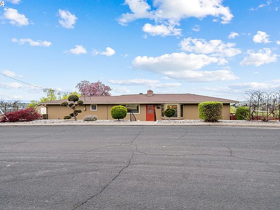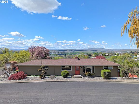 EXTRA LOT! This beautiful property offers an adjacent lot with an outstanding view of Pendleton and the Round-Up grounds. Build a new home or consolidate tax lots and add your dream shop right next door! The current home has been meticulously maintained and offers 2 bedrooms and 2 full baths, gorgeous hardwood floors, an open kitchen and dining room space, sizable living room with gas fireplace, and a bonus room to fit your needs (entertainment room, workspace, hybrid, etc). All kitchen appliances and mounted TVs will stay with the home. There is plenty of of storage in the attached garage, basement space or shed just outside of the home. Underground sprinklers for the entire yard make landscaping a breeze. You will also save on energy costs with the paid off solar panels! This is a great north hill location without neighbors surrounding you and beautiful views! Schedule your showing today!