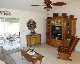 Located in the Village of Caroline - 2 bedroom/2 bath plus den Corpus Christi ranch.This ranch home features ceramic tiled floors and double pane windows throughout.As you arrive at the home you will notice the color-coated driveway and sidewalks that lead to the lovely leaded glass entry door.As you enter the home the vaulted ceilings give the home a spacious and open feel. The kitchen features white wood cabinets, built-in microwave, refrigerator, range, dishwasher - all appliances including the washer and dryer have an extended warranty.Both baths have solar tubes for natural lighting.The enclosed lanai features acrylic windows,sun shades and a color coated floor that looking out over a private backyard.Some additional upgraded features include pull down stairs in the garage,extra blown-in insulation in the attic and 5 upgraded ceiling fans for additional energy savings.The Bond payoff is $12692.05,the annual Maintenance Fee is $476.02,and the annual Bond Debt is $1067.67.