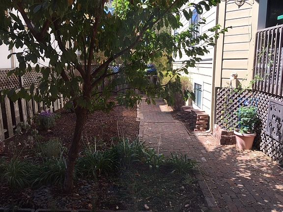A sweet gem located on a charming street in delightful Alameda awaits you! The property is set back from Park Ave which offers a peaceful setting. Freshly painted, sun filled, and beautiful: a cottage with an open floor plan featuring hardwood and tile flooring. This home offers two levels with two bedrooms on the second floor both with high vaulted ceilings and the first floor with an updated kitchen including granite counter tops and a gas range. Enjoy your yard nestled within the pines! Two off-street parking spots available. 30% Rental Fee, Owner Pays Garbage