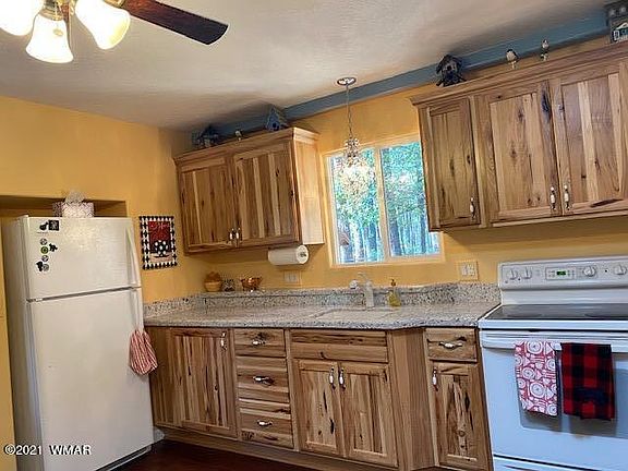 This very special hidden gem will amaze you! And it's tucked up against the National Forest for peaceful quiet and amazing views!! The owner has done an excellent job of remodeling the home to include a master bed & bath, as well as a second room used for guests with an additional bath. The kitchen is eye-catching, convenient, and just right to enhance this little White Mountain getaway. Porches on two sides of the home invite you to sit, relax, and enjoy the fresh Pinetop air while savoring meals in the cool breeze. Upgrades include new engineered wood flooring, hickory cabinets, granite countertops, new paint throughout and a brand-new water heater. Furnishings available by separate bill of sale.
