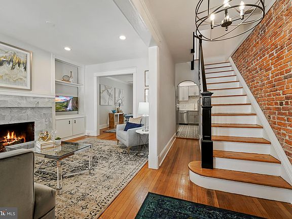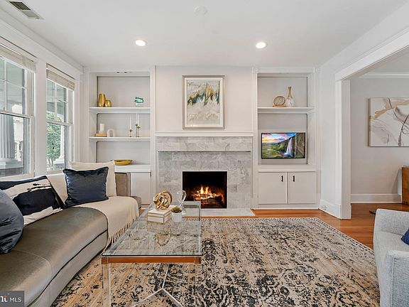 Charming and bright three bedroom townhouse in Petworth/Columbia Heights nestled on a quiet block of Quincy. The front porch is a perfect perch to enjoy a cocktail and catch up with the neighbors or read a book. The main level features a welcoming entry foyer; living room with new Carrara marble fireplace surround, built-in bookshelves/cabinetry, flat screen TV; sun-filled dining room open to renovated kitchen with elegant tile flooring, light grey cabinetry, quartz countertops and a suite of stainless steel appliances. The newly re-tiled enclosed sun porch is adjacent to the renovated powder room. Upstairs, main bedroom has two closets and is served by hall bath with new vanity, chic new tile flooring and skylight. Second bedroom has en-suite full bath. Third bedroom offers room for bunk beds and hobby space/office nook. Finished lower level has recreation room and powder room. Marvelous rear yard offers three tiers - rear deck, flagstone patio and brick-paved PARKING for two cars behind wooden gate. Wood floors throughout main and upper level. Radiator heat is wonderful in the winter and the central air conditioning system was replaced this year! Prime location between Petworth & Columbia Heights commercial corridors and Metro stations - myriad restaurants, bars, retail options nearby.