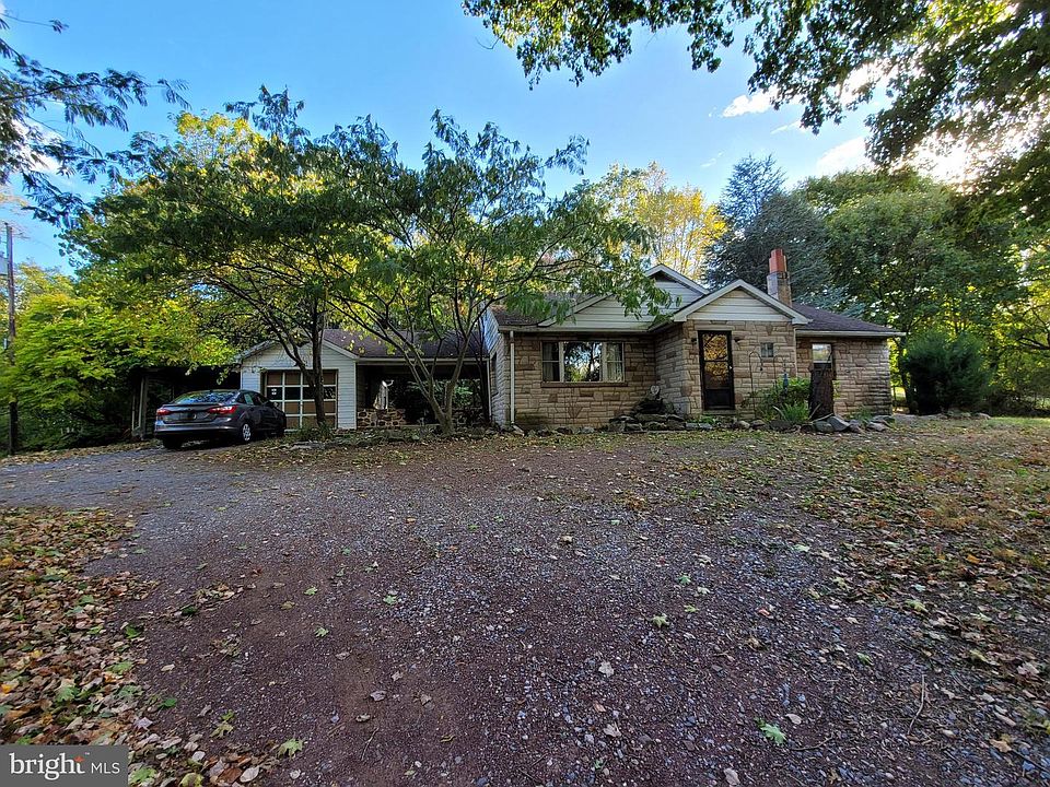 Stone ranch home on 2 acres. Three bedrooms. Surrounded by trees, offering peaceful privacy. Partially finished basement. Easy access to highways.