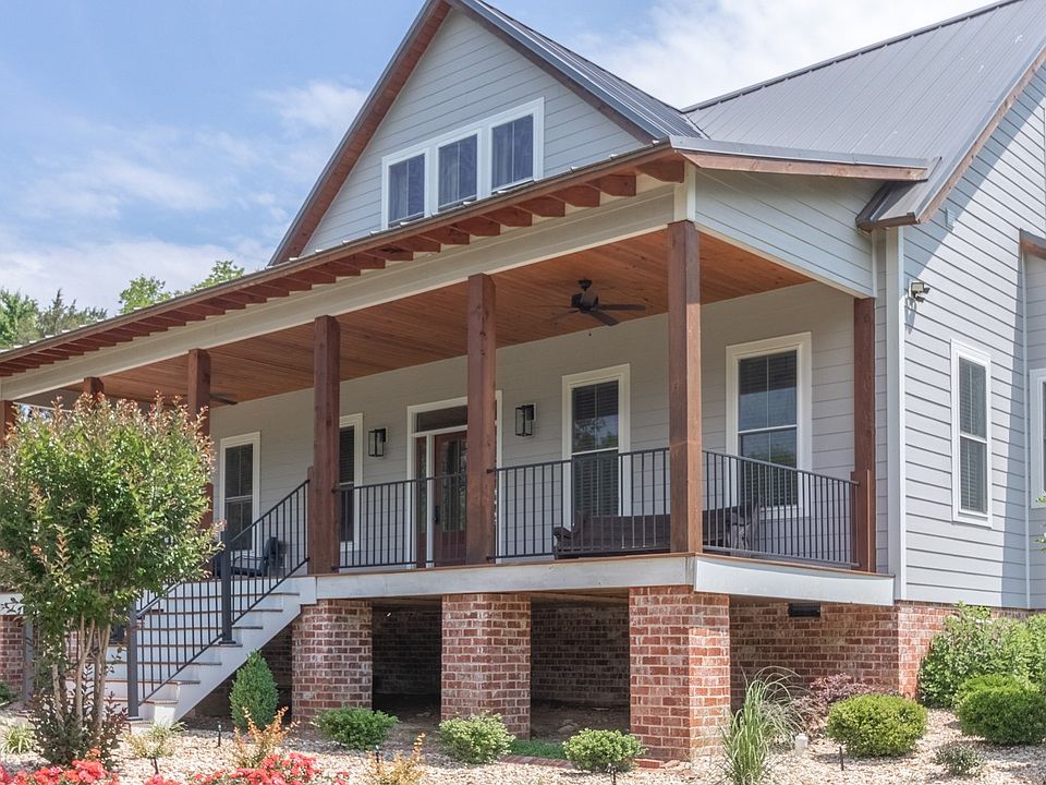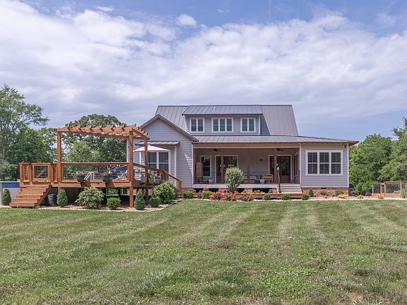 ***UC w/kickout clause in place, homesale contingent, please show!*** custom built and formerly owned by a local builder. Home sits on 5 mostly open and flat acres, circled by trees adding to the seclusion and privacy. Modern farmhouse style fiber cement construction with lots of landscaping front, back, and sides. Dont feel like watering all those plants? Dont have to, theyre on a timer. Gorgeous tongue & groove ceilings thru-out most of first floor. Ten foot ceilings, eight foot solid core interior and exterior doors. Exposed rafter tails sit above brick rain ditches. Standing seam metal roof. Oversized composite front & back covered porches. Open great room & kitchen. Separate Den. Two bedrooms on Main floor including primary. Two bedrooms upstairs with converted attic space for cubbies / play area / etc. Generous and well lit flex space at the top of the stairs. Encapsulated crawl space & spray foam insulation. 2024 pool liner!