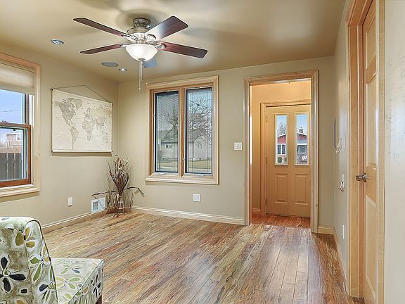 TOTALLY RENOVATED INSIDE & OUT 4BR home will knock your socks off. Builders own home so no expense was spared! Gorgeous kitchen w/tile & stone backsplash, center island, granite countertops, tile floor & beautiful cabinetry...plus cool lighting. Cozy living room w/recessed lighting & surround sound along w/stunning floors that are made from recycled wood furniture (pers seller). Main floor bedroom is convenient along w/a main floor full bath. Extra room by the stairs for a pantry or storage...BONUS. Upstairs are 3 bedrooms, one with a vaulted ceiling and used as an office. Beautiful maple doors & trim throughout. LL has great space to maybe finish how you want...pellet stove and cabinets there already plus a toilet! Walk to shopping & more. Love the backyard fire pit & garden area. A 2-car garage w/cabinets & more storage area. HUGE & long list of updates inside and out...you won't be disappointed.