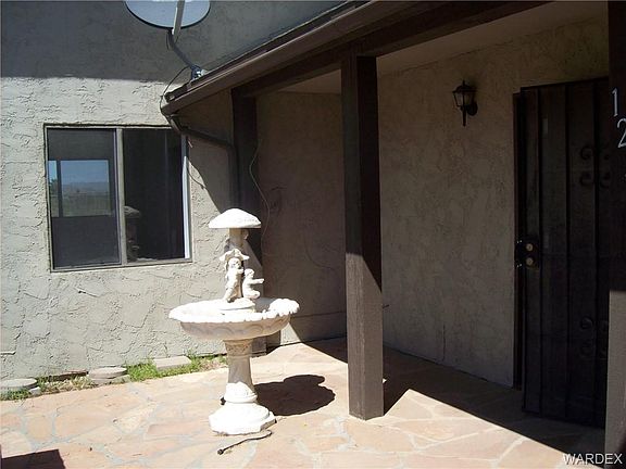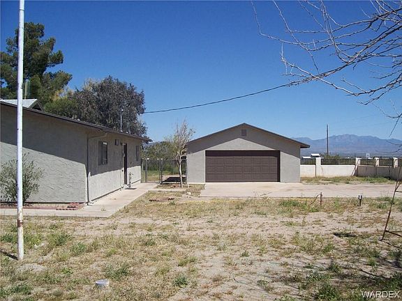 Clean all electric home on paved Estrella, - granite countertops kitchen/tiled floor**split bedroom plan**new carpet** newly painted** wood burning granite faced fireplace**LR w/built-in cabinets** tiled top bathrooms w/tiled floors,**walk in jetted tub**tiled shower**fans in every room**extra bedroom has built in wooden closet** all chain link fenced with gates** front yard has a decoratively stuccoed wall - xtra big detached garage 24x30. 12x20approx. enclosed AZ room. Ready to move in and enjoy the view to the beautiful Black Mountains.