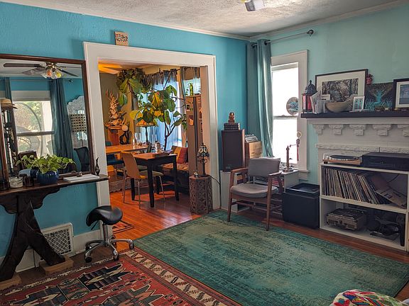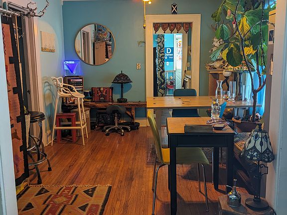 Hey there- 1 large/bright bedroom in a 2-bedroom house available immediately for $800/month + $800/deposit ($1,600 at time of lease signing due unless prorated for first month occupancy.) All bills paid, including water/gas/electric/high-speed WiFi & yard maintenance, and off-site parking. The house is shared with one other person, John (he/him, early 40s). The house is managed off-site by the homeowner, Ren (she/her, early 40s), who often travels out of town and is no longer "based" in this home. Ren and John are longtime friends-- any questions or requests will be efficiently addressed by one or the other. Our home is eclectic, kind, irreverent toward ideologies yet respectful of people. Mutual consideration and proactive communication are important to us. Pets are welcome for visits but not to stay. Non-tobacco-smoking preferred but not a deal-breaker as long as you leave no trace with outdoor smoking. We keep it tidy while full of curiosities. Music of all kinds, cooking experiments, and small get-togethers now and then, which you might join as well- With those norms in mind, all self-identities and personalities are welcome to apply. We're situated in Riverview, just south of downtown. It's mostly quiet except for the Cry Baby Hill races during Tulsa Tough and other neighborhood happenings like Greek Fest. The room available is bright, set in the SW corner, and around 13' x 15'. The walls are deep blue and pale grey. It comes with a walk-in closet and is furnished with a long table for sunning plants if you'd like to keep it One door opens to the kitchen, and in turn, to the back yard for a semi-private // back-door entrance. The other leads to a hallway with a full bath featuring an insulated bathtub and a standing shower Further down is a lovely "parlor room" for reading, working out, music, and creative projects A large front porch opens to a living + dining room with plenty of seating, desks, and a record player The basement includes a W/D, with clotheslines in the backyard. There are a few small gardens in the front, back, and side if you're inclined to grow or farm The house is fully furnished. There's no additional room for big furniture, kitchen equipment, electronics, etc. We don't have a TV or cable, although WiFi-connected gadgets abound. (If you want to set yourself up with cable stuff, we're open to that, but this cost will not be included in // covered by monthly rent.) We have a long driveway for you to park in off-street and on-street parking is usually not an issue. Inquiries will be received by Ren, who'll coordinate with John for showings. Please say a few words about yourself and why our home sounds like a match. We look forward to hearing from you and connecting if this is your dream house, as it is ours. Cheers, John & Ren 6 month lease preferred. Utilities included in rental cost. No smoking indoors. You may park in the driveway.