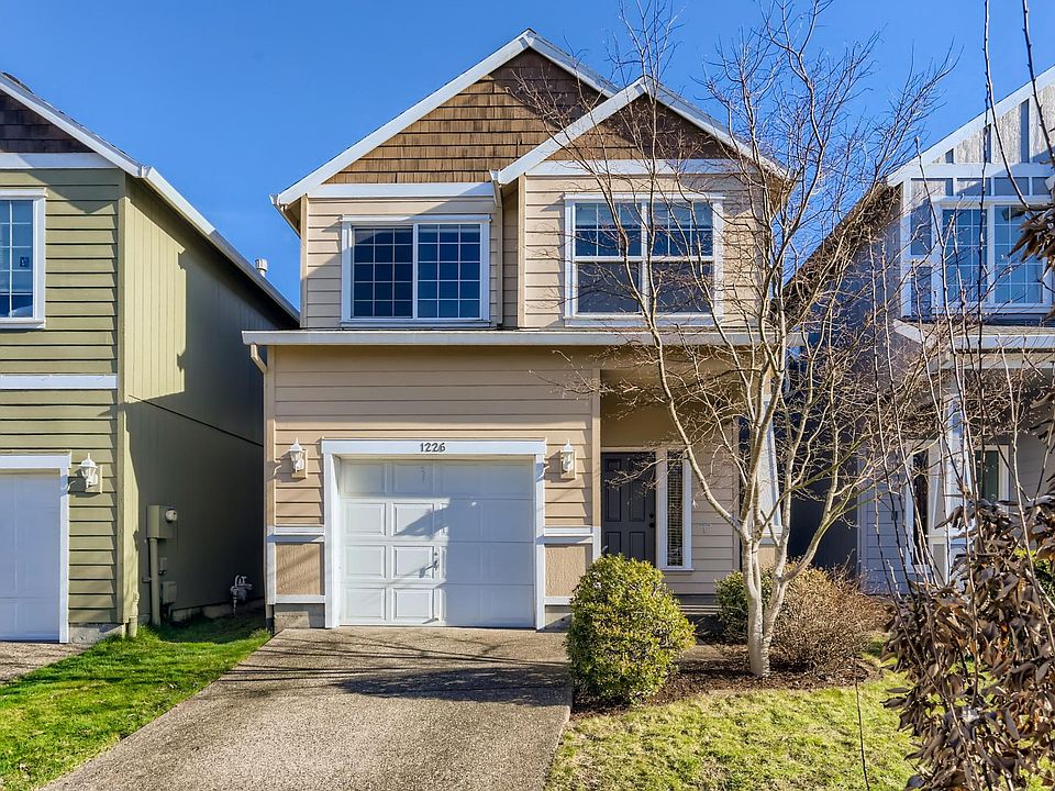 Modern interior with an open floorplan, vaulted ceilings and lots of natural light. Fully updated bathrooms including brand new quartz countertops. Huge master bedroom with walk-in closet. Tons of garage storage. Fully fenced, easy-to-maintain, landscaped yard. Central A/C. Pet-friendly. Amazing location -- a half mile walk to the Elmonica MAX station, 1 mile to the Nike campus, and a short drive to Intel. Lots of shopping just down the street. Great walking trails and parks.
