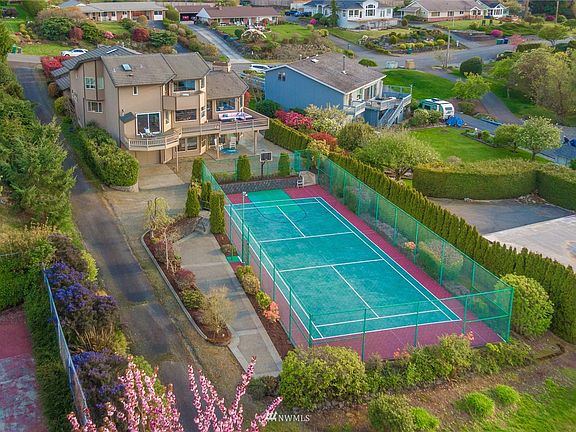 Amazing premier custom designed/well-maintained home w/stunning endless Sound & Olympic Mt views & private beach access. Gated entry, brand new furnace+A/C, grand foyer, open to fully renovated main flr, continuous hardwoods, elegant/open gourmet kitchen w/high end appliances & quartz countertops. Enjoy outdoor living on Trex deck & watch incredible bald eagles & sunsets. Master ensuite w/custom walk-in closet & private balcony. Full separate living space w/connected garage in lower level, plumbed for kitchen if needed; great for guests or live-in. Beautiful low maintenance landscape/huge gated-lighted sport court/surround sound syst/high end security syst/generator hookup/garage for boat or RV. Quiet Street but close to shopping & dining.