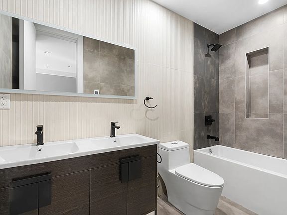 1226 Saint Marks, is qualified for The Eagle Program with First Republic Bank. Which Gives qualified buyers an opportunity to lock in at a 3.79% to 4.54% Interest rate on their loans. Welcome to 1226 St Marks Ave, the premier new development in Crown Heights. With intuitive layout and modern convenience, this building provides an open format that utilizes clean lines and floor-to-ceiling windows. All units have a quiet, energy efficient heating/cooling system, their own 48-gal hot water heater, and washer/dryer hookups. Through sophisticated design, this building offers rich enjoyment in an expansive living space. 3B, a 1-bedroom, 1-bathroom is the portrait of contemporary living. Enjoy city views from the north-facing balcony while entertaining or just relaxing. The 5-inch white oak floors showcase the long, open space, taking advantage of the extra length this building has to offer. A German kitchen, filled with every convenience including custom cabinetry and plenty of storage for essentials, will meet all your cooking needs. It's equipped with sleek countertops, a white tile backsplash and a suite of high-end stainless-steel electric appliances including dishwasher and microwave. The bedroom has a reach-in closet and is spacious enough for a king-size bed. Designed with an eye to detail, the bathroom is encased with cool, grey tile, has a radiant heated floor, oversized LED mirror, a Fine Fixtures deep soaking tub and custom Blossom vanity. 1226 St Marks sits just a block away from St Johns Park with its onsite rec center. The building is located near the Crown Heights North Historic District with 19th century revival architecture, listed on the National Register of Historic Places. Local C and A express trains are within?close proximity?as well as the 2, 3 and express 4 trains. All at the two Utica Ave stations.