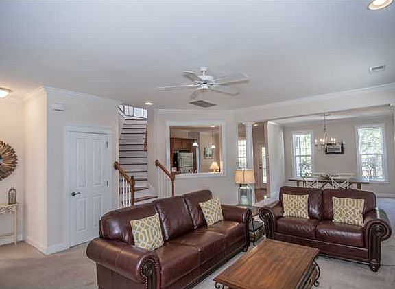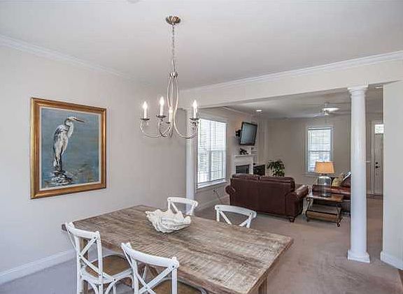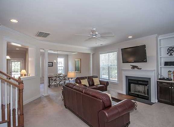 Run, do not walk to see this gorgeous home, located only minutes to downtown and Folly Beach! This home was the model home for the neighborhood and it still shows like one. Move in ready! You will love the open feeling as you enter this lovely home. A large family room with built ins, crown molding, and a wood burning fireplace makes you feel immediately welcomed. This graciously opens to the large dining room with an entrance flanked by columns with crown molding that continues to enhance the home. The kitchen is sleek and well designed as it has an island, stainless steel appliances, wood floors, corian counters, and 42" cabinets. There is a space for casual dining as well. Enjoy the outdoors without the bugs on the screened-in porch. The backyard is partially fenced and has lots of room for whatever your needs may be. The 2-car garage is detached and is dry walled. The master bedroom is downstairs with a ceiling fan, walk-in closet, and a master bath with dual sinks, garden tub and shower. In addition, the first floor has a coat closet, half bath, and space for the washer and dryer. The second floor features 3 additional bedrooms and a full bath. One of the bedrooms is very large and opens to a porch, which is a lovely feature and adds to the curb appeal of this home. This home has everything you are looking for in a fabulous location! Welcome home!