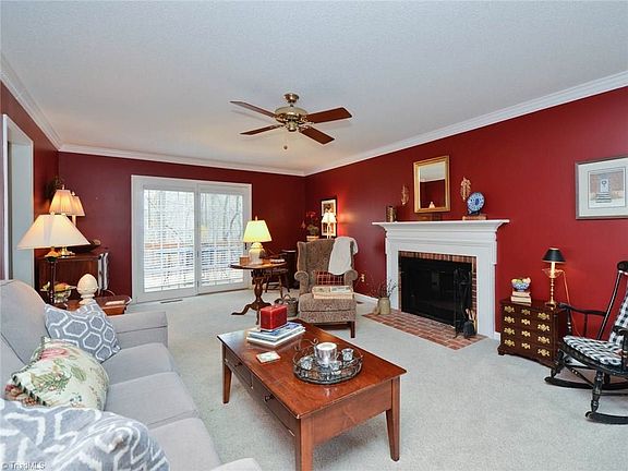 Wonderful home lovingly maintained for many years located in small community on cul-de-sac. Beautiful setting on lot with mature trees. Great floor plan with spacious living room that includes wood burning fireplace & french doors to large deck. Bright eat in kitchen with updated countertops, tile backsplash & cabinet hardware. Recent improvements include new roof, carpet, interior paint, garage doors & updated light fixtures. Finished den in basement with built ins and window seat!