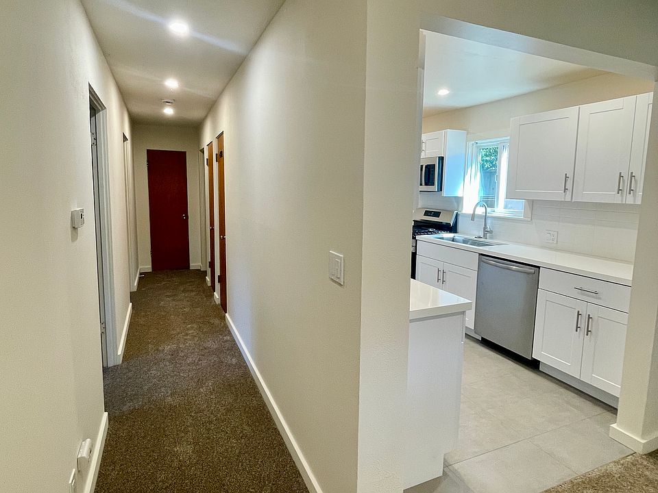 Centrally located just 1 block from Calistoga's main street, this completely-updated 2 bedroom/1 bathroom apartment can be your fresh new home. This unit features new: - Carpet in living areas and bedrooms - Tile flooring in kitchen and bathroom - Paint throughout the unit - Kitchen cabinets, countertops, and all appliances including a dishwasher and gas range stove with self-cleaning convection oven with air fryer - Bathroom vanity and fixtures - Filtered drinking water system in the kitchen Both bedrooms face the complex's lovely garden and lawn area while the front door has easy access to the street to take advantage of the incredibly walkable location. The living room is an open floor plan with the kitchen making for a spacious feel and plenty of room to cook, dine, and relax. The kitchen features a dishwasher, full-sized fridge, significant storage, stove, and microwave. The full bathroom features gorgeous details as well as a shower/tub combination and a sizable linen closet. The bedrooms have new wall to wall carpeting and full size closets. The living room and both bedroom windows look out to wonderful mature greenery. The common courtyard features lovely gardens and a path leads to the shared laundry room. Included in the rent is: - Covered, off-street parking right next to your unit - A sizable, locking storage unit in front of your designated parking spot - Gardening services Tenant is responsible for all utilities. Indoor cats considered on an individual basis with additional security and fee. Dogs not accepted. CalMart, Calistoga's grocery store, is an easy 2 block walk from the unit. The rest of downtown Calistoga including its restaurants, tasting rooms and bars, shops, exhibits, and parks are also easily walkable. Just a mile to Four Seasons and Solage Resorts, 15 minutes from St. Helena, 20 minutes from Santa Rosa, 30-45 minutes from Napa, and 45 minutes from Healdsburg this unit is centrally located to all your Wine Country & North Bay destinations. Nearby attractions and institutions include the Culinary Institute of America, The CIA at Greystone, CIA chef school, St. Helena Hospital, Napa Valley Wineries, Sonoma Valley Wineries, Solage and Solbar in Calistoga, Four Seasons, The Wine Train, COPIA.