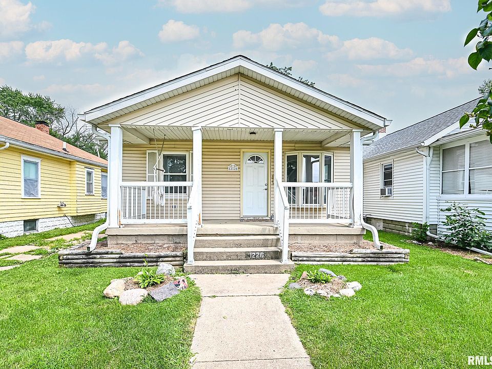 2 Bedroom/ 1 Bathroom ranch style home with newer carpet and vinyl flooring throughout! The extra long living room is complimented by natural light, and leads to the eat-in kitchen. Both bedrooms are on the main floor. The basement offers ample storage space and large Rec Room. Outside, the home features a covered front porch and back deck.