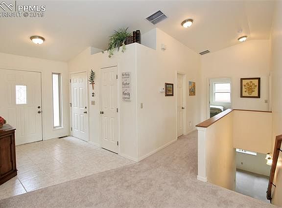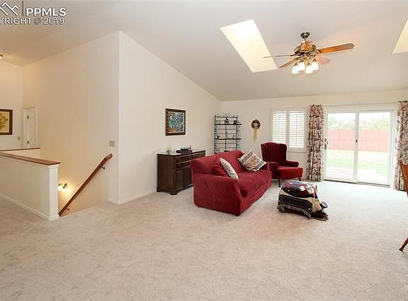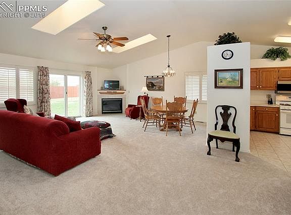 Fantastic stucco ranch with A/C, backing to big sky views and an easement for access to the fenced back yard for a future shop/shed or parking. This one-owner home is has been impeccably maintained and is in true move-in condition. Bright, open floor plan with vaulted ceilings, skylights and neutral finishes. Main level with foyer entry, great room, dual walk-outs from the living room and master bedroom. The 100% finished basement offers a large family room, dedicated laundry and large bedrooms. See supplemental remarks. Nestled within an established neighborhood in the heart of Calhan, this home is the perfect blend of small town country living close to city amenities in Falcon and Colorado Springs. Additional features include; New carpet throughout and plantation shutters. Large eat-in kitchen with a gas range, custom solid wood cabinetry, dedicated pantry, tile floor and an 8' window seat. The master bedroom offers vaulted ceilings, walk-out to back yard, 4-pc bathroom with a jetted tub, free-standing shower, long vanity counter and a walk-in closet. The laundry room is centrally located at the base of the stairwell in the basement, has a laundry/mop sink and built-in cabinetry. Fully fenced, level backyard with gates on both sides, from the rear easement and a service door into the 2-car garage. If you're looking for a turn-key home in a peaceful area, this is a must see.