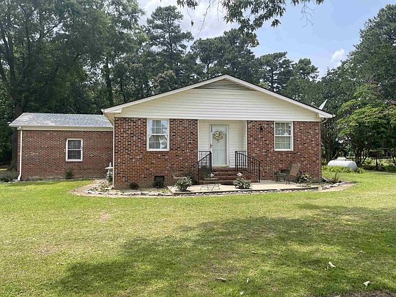 Charming brick country home on an acre of land. This home won't last long, built in 1979 this cozy 2 bedroom 1 bath house with great landscaping comes with and outdoor shop turned into a kitchen and a large barn on the left side of the home. Updated vinyl windows and roof that is only 3 years old. Full bath has a walk in shower and can be accessed from hall way and from master bedroom. As an added bonus this home has 2 mobile home hook-ups to the left of the large barn on the left side of the house for your camper or for family and friends to come visit.
