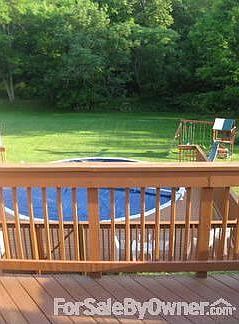 *Well-maintained home in move-in condition.*Very large level yard backed by trees for privacy. *Brand New roof with 10 year transferable warrantee *Very large 12 x 26 and 10 x 7 multi-tiered deck off of dining room. *24' round above ground pool with wrap around deck *Security System *large driveway can accomodate many cars and has level area in rear for kids to ride bikes, etc.*Storage ShedAdditional property info: http://www.forsalebyowner.com/listing/L981H?provider_id=28079
