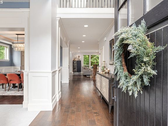 This beautifully updated home blends high-quality construction with thoughtful upgrades and a peaceful setting that backs directly to Tryon Creek State Park. With 5 true bedrooms—including two en-suite suites — a dedicated office, large family/media room, and flexible living spaces throughout, it’s ideal for multigenerational living or entertaining. On the main level, you’ll find a bedroom with a remodeled en-suite bath featuring a walk-in shower and walk-in closet. The kitchen has been fully refreshed with quartz countertops, a Dacor gas cooktop, new range hood, sink, faucet, lighting, and new dishwasher — plus freshly painted cabinetry for a clean, modern look. The living room features a newly tiled fireplace and painted built-ins, giving the space an updated feel. The laundry room and powder bath have also been fully remodeled. Upstairs, the spacious primary suite includes a fully remodeled spa-like bathroom with all new tile, a soaking tub, walk-in shower, and heated floors throughout the bathroom and walk-in closet. Three additional bedrooms are also upstairs — two bedrooms share a connected bathroom, each with its own private vanity. The third bedroom is oversized with double closets. The dedicated office features built-in bookshelves, a gas fireplace, and peaceful forest views—perfect for working from home. The lower-level family room features a built-in home theater system with a 144” projection screen, custom cabinetry, and new blinds. Enjoy your private backyard sanctuary with an extended deck and lighting, fire pit area, new fencing, lush landscaping, and a 6-seat hot tub. Additional highlights include all new interior and exterior paint, carpeting, new water heater (2022), central Vacuflo system, and a 3-car garage with EV charging. Minutes to downtown Portland and Lake Oswego. [Home Energy Score = 1. HES Report at https://rpt.greenbuildingregistry.com/hes/OR10191007]