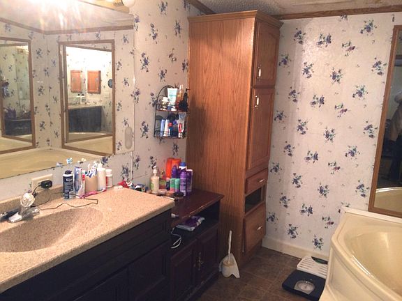 1994 large doublewide (28x76) featuring 4 bedrooms, 2 full baths. Living room, and family room on main floor. Dining room with sliders to a deck. Wood burner for alternative heat source. Large master suite with garden tub. full unfinished basement, main floor laundry. Situated on 2.2 acres of seclusion.
