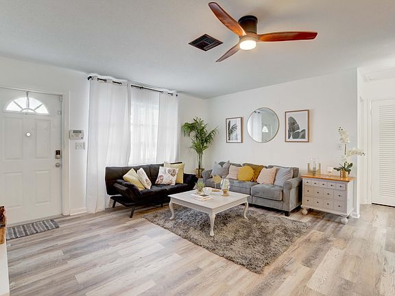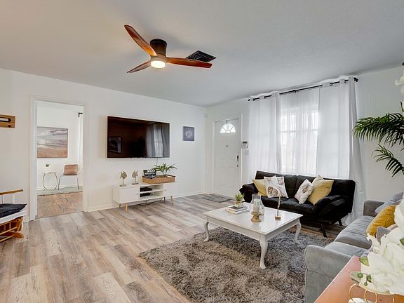 FANTASTIC OPPORTUNITY AN AIRBNB! Single Family Home, Light and Bright CBS Home, Newly renovated, New Roof 2022 on a corner lot with large circular drive way , attached carport and boasts 3 Bedrooms, 2 Bathrooms, Living and Family room. Fully fenced large back yard great for family fun and entertainment. Close to I95, Gardens Mall, Downtown at Gardens, Fine Dining, Beach, and 20 minutes from the Airport. A MUST SEE!